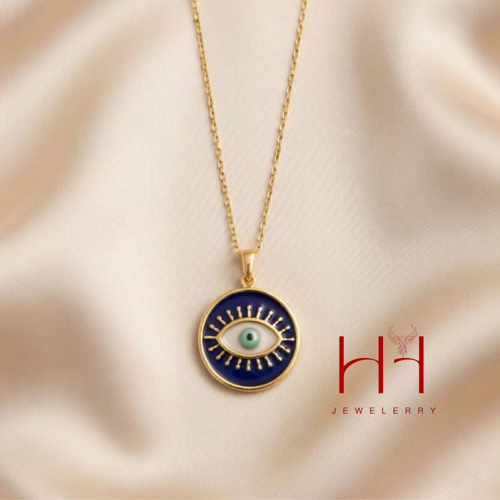 HH Jewelerry-dən həm mənalı, həm də dəbli bir parça! Bu sep, qədim “nəzər” simvolunu modern və lüks bir dizaynla birləşdirir. Tünd göy rəngli minalı fon üzərindəki incə kirpik detalları və mərkəzdəki göz simvolu boynunuzda mistik bir cazibə yaradacaq.