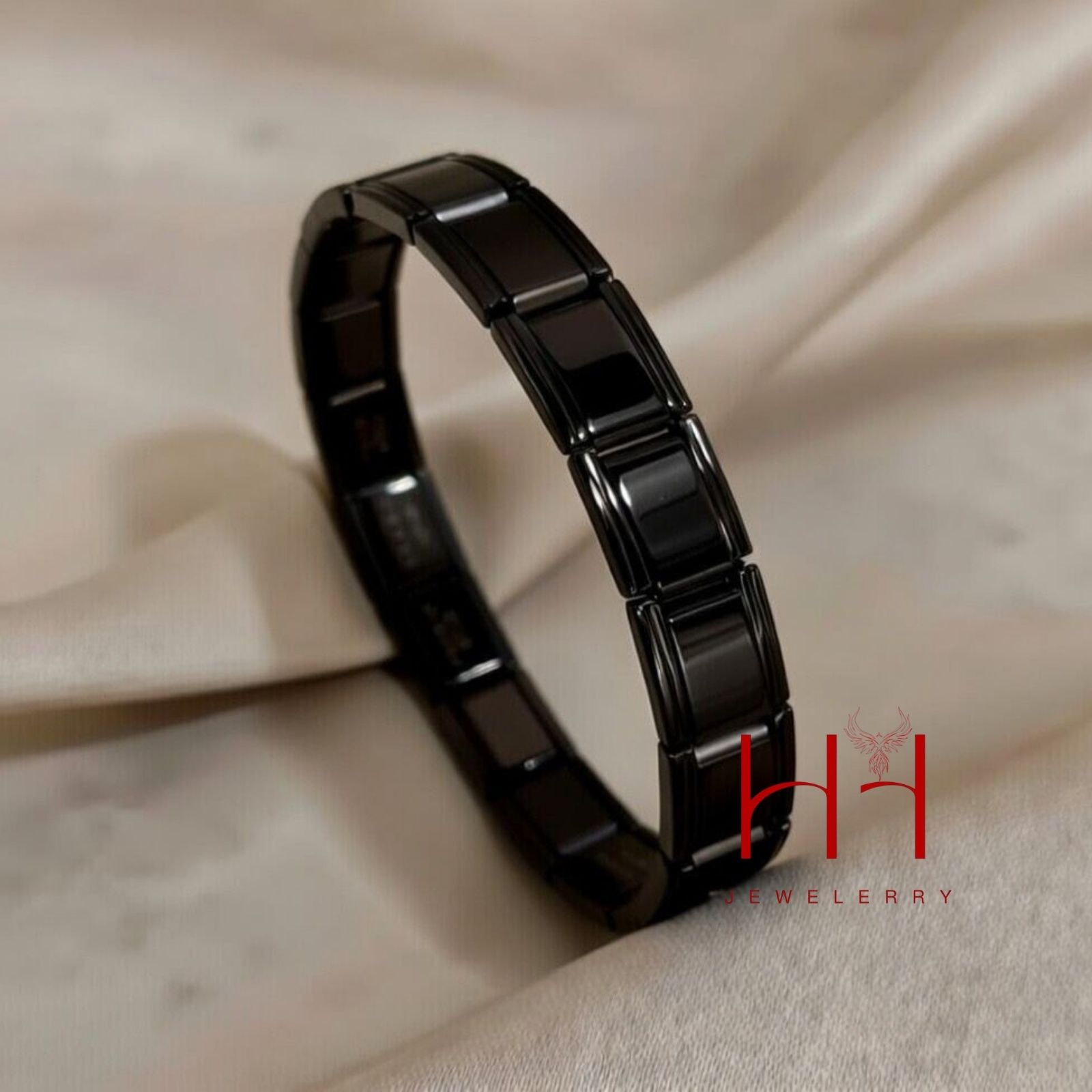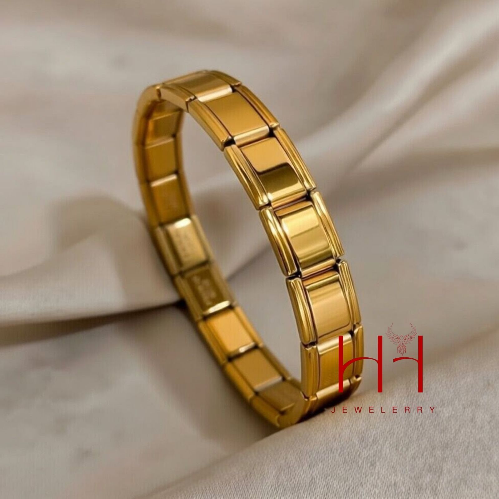 HH Jewelerry-dən həm bəylər, həm də xanımlar üçün nəzərdə tutulmuş zamansız bir model! Dünyaca məşhur İtalyan modul dizaynından ilhamlanan bu qolbaq, sadəliyi və modern duruşu bir araya gətirir. Bir-birinə keçmə modul hissələrdən ibarət olan bu model, xüsusi elastik mexanizmi sayəsində biləyə tam oturur və istifadəsi olduqca rahatdır. Gümüşü rəngin parlaq və mat keçidləri ona lüks bir saat qolbağı görünüşü qatır. İstər saatınızla kombin edin, istərsə də tək taxın – bu qolbaq hər zaman diqqət mərkəzində olacaq.