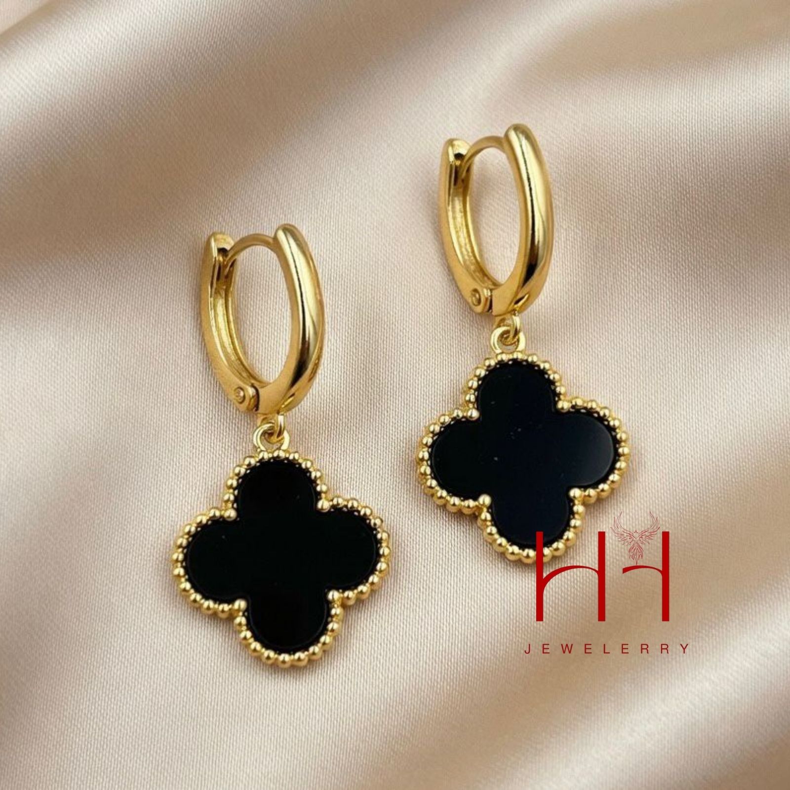 • Model: Van Cleef Style Clover Earrings (Black).